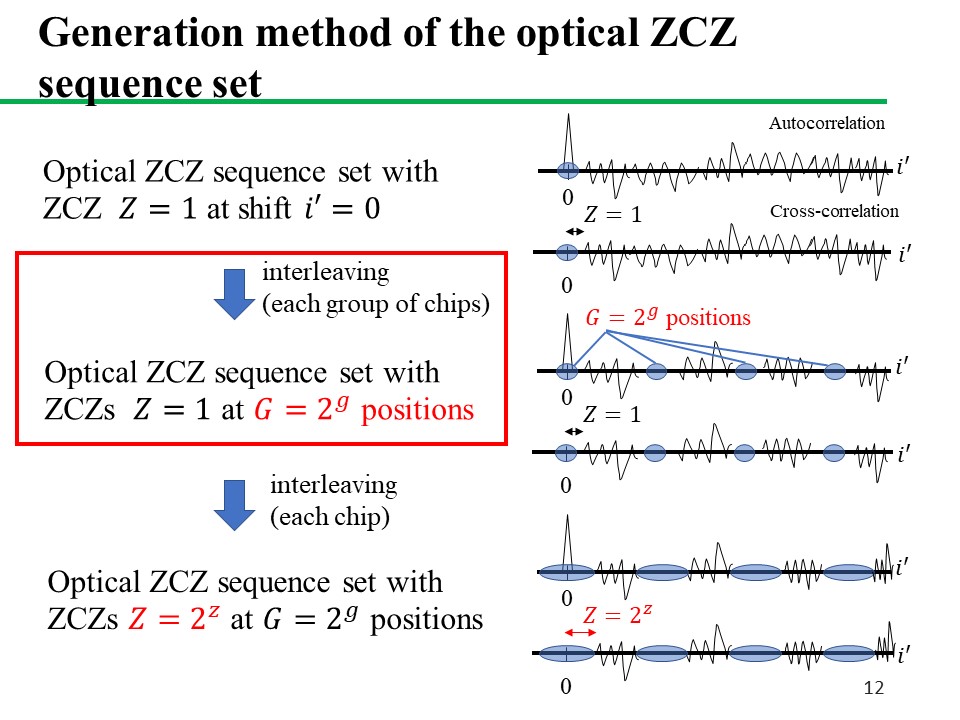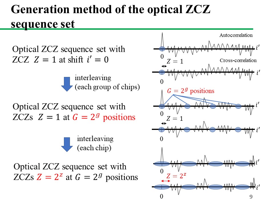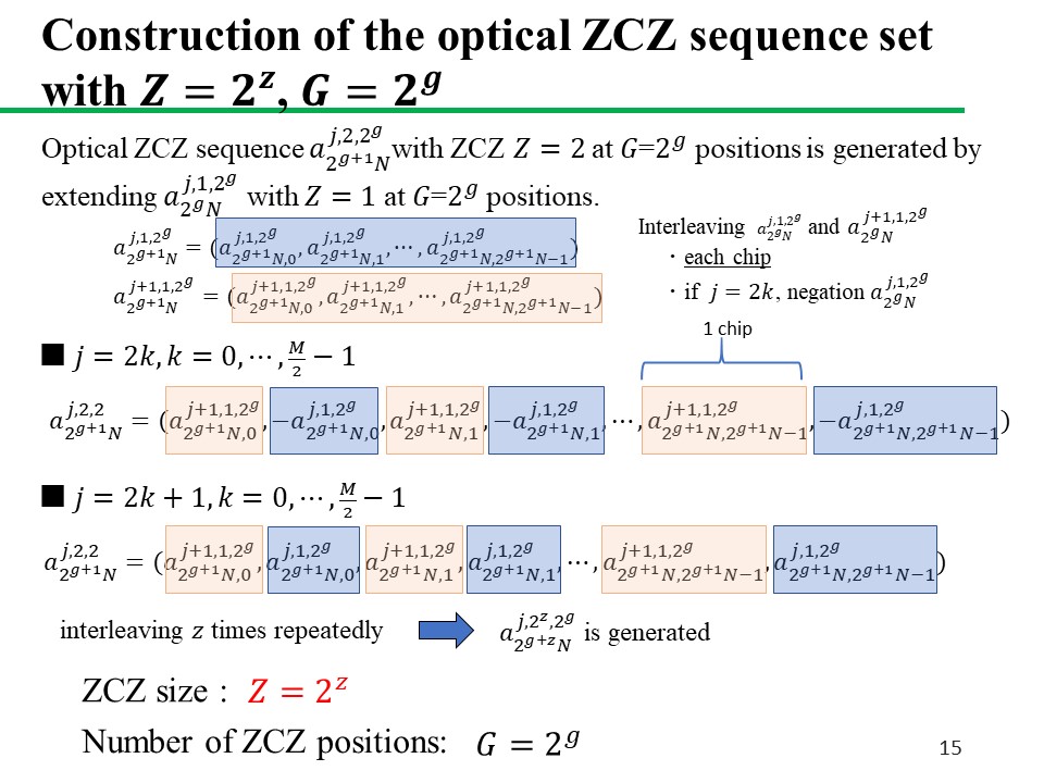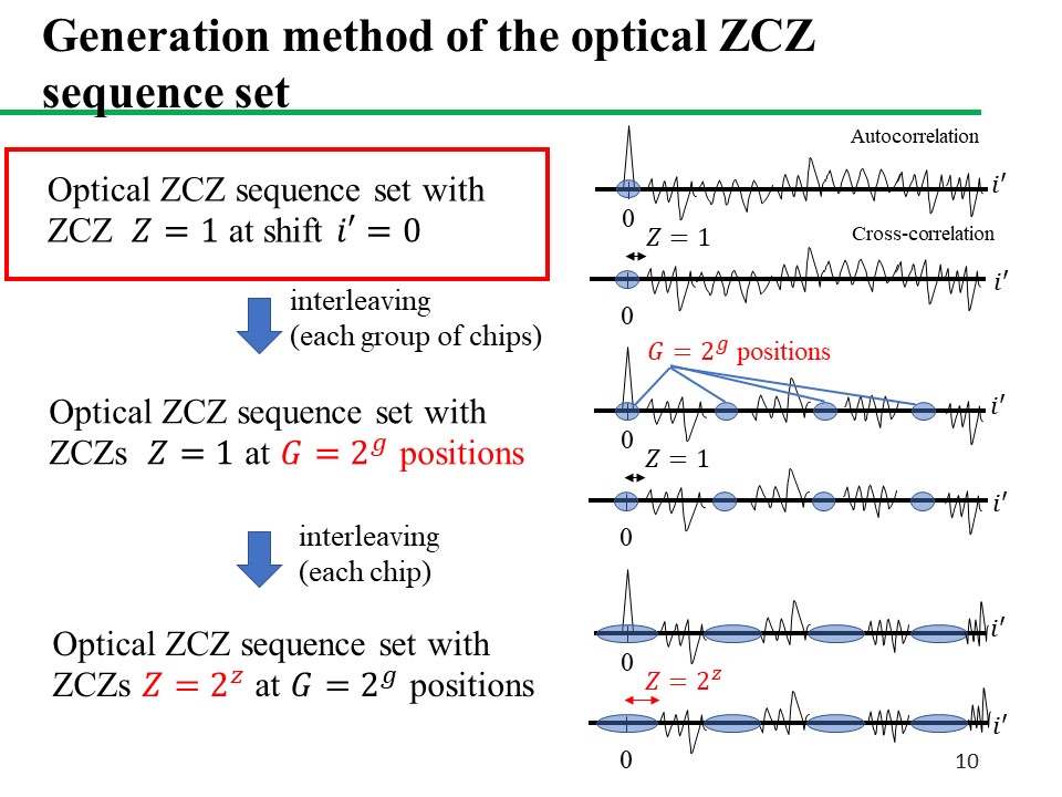Finally, I explain about the optical ZCZ sequence set with ZCZ size Z equals two to the power of z at two to the power of g positions.