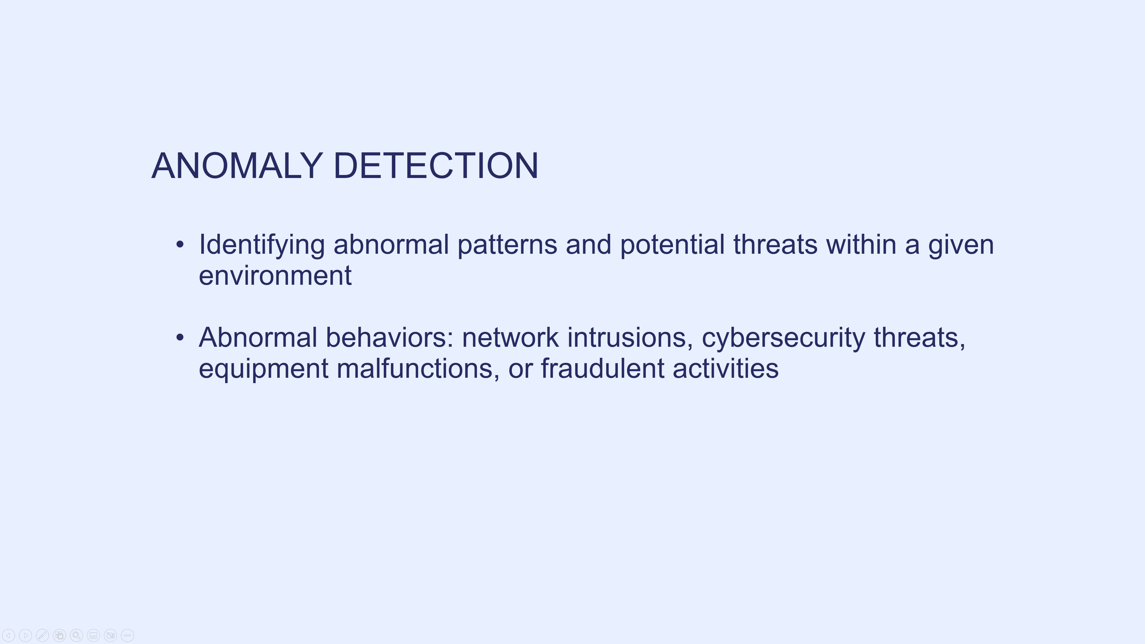 What is anomaly detection? Anomaly detection is a technique used in various fields to identify abnormal patterns and potential threats within a given environment. Network intrusions, cybersecurity threats, equipment malfunctions, or fraudulent activities are considered as Abnormal behaviors.