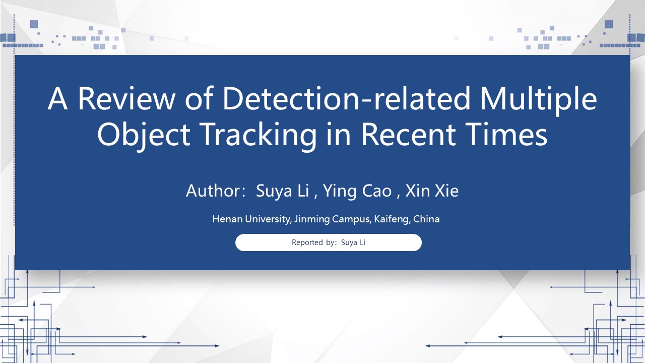 Hello everyone, I am Suya Li, a graduate student from Henan University in China. My research focuses on reviewing the multi-target tracking related to detection in recent years. Below, I will briefly introduce multi-target tracking and introduce our paper from the aspects of object detection, multi-target tracking algorithms, datasets, applications. |