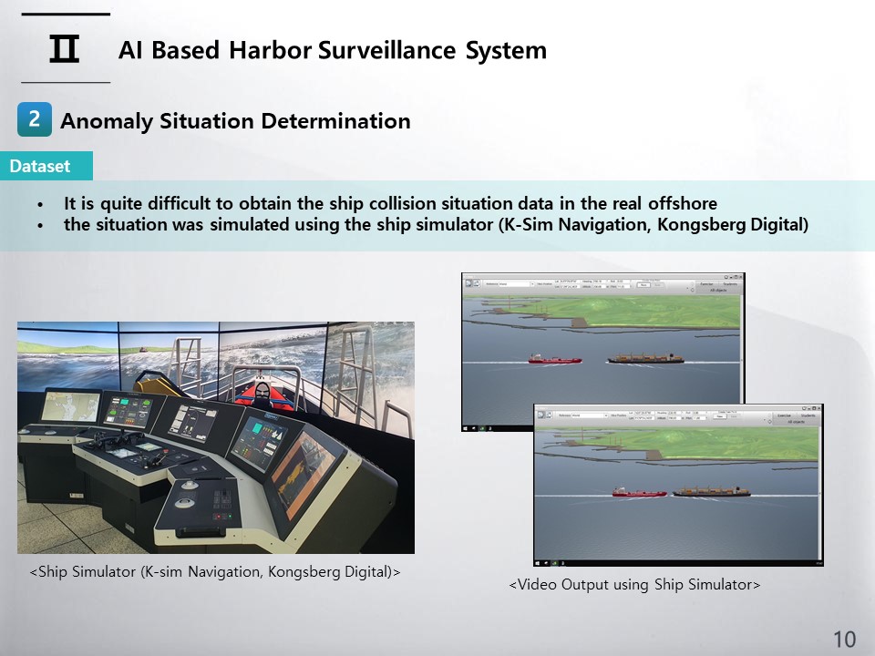 We consider an approach situation that can cause a ship collision as an abnormal situation and establish a system that can judge it. Since it is quite difficult to obtain the ship collision situation data in the real offshore, the situation was simulated using the ship simulator (the simulator model name is K-Sim Navigation, and the manufacture and configure company is Kongsberg Digital). In the ship simulator, latitude and longitude and simulation image data of two ships were acquired at three samples per second under the condition that the camera¡¯s altitude and vertical angle were fixed.
