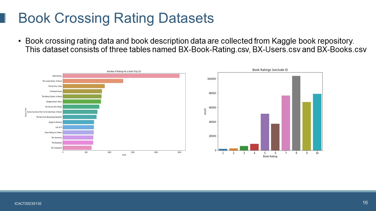 Another dataset is used to supplement the book-crossing rating dataset mentioned above. The book description dataset includes book information about book title, description, summary, and category.
