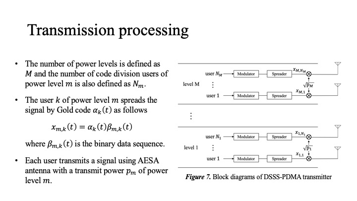 In this section, we consider terrestrial users of vehicles with AESA antennas for satellite communications connected to terrestrial 5G networks. The terrestrial users transmit PDMA signals according to the QoS requirements, but the interference effect on the surrounding terminals increases as the power is set higher. Therefore, DSSS process is applied to reduce the interference effect. Our goal is to achieve both QoS control and interference reduction by our proposed DSSS-PDMA scheme.